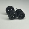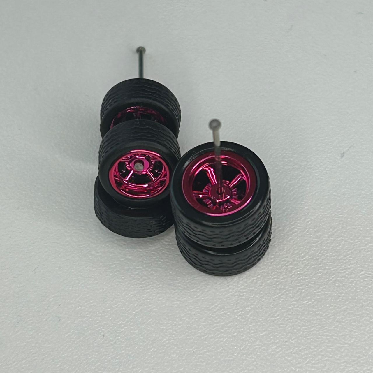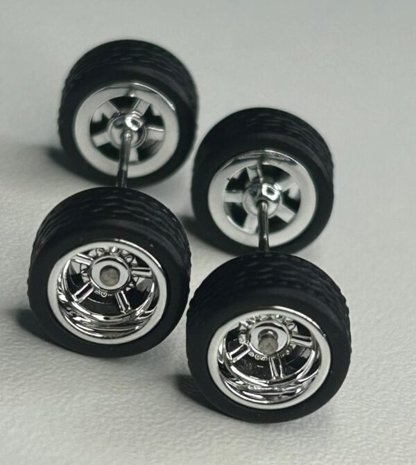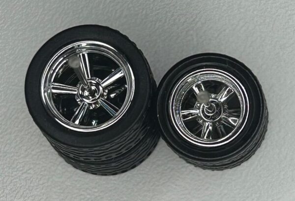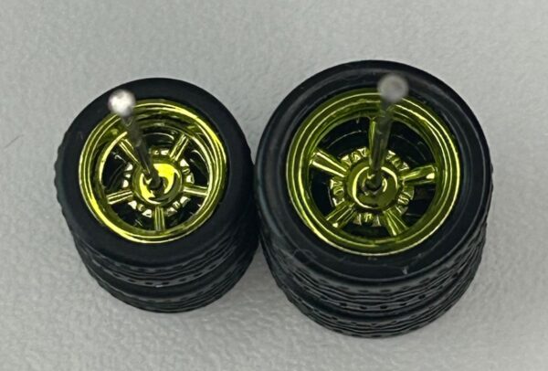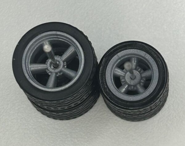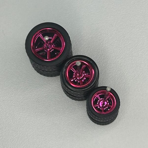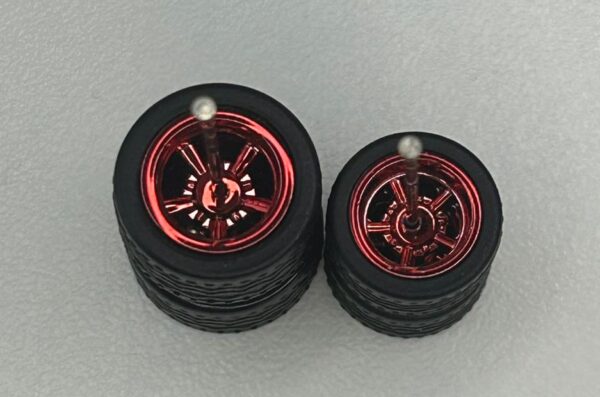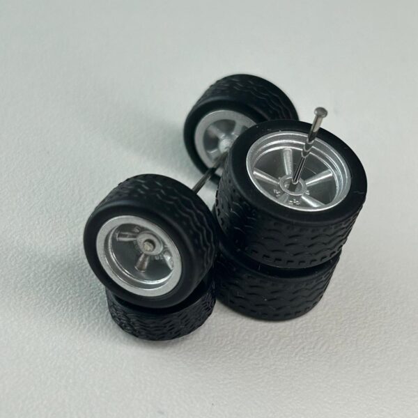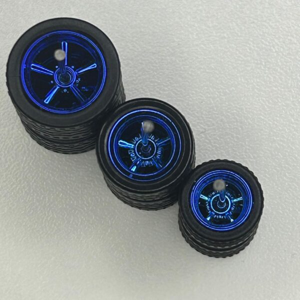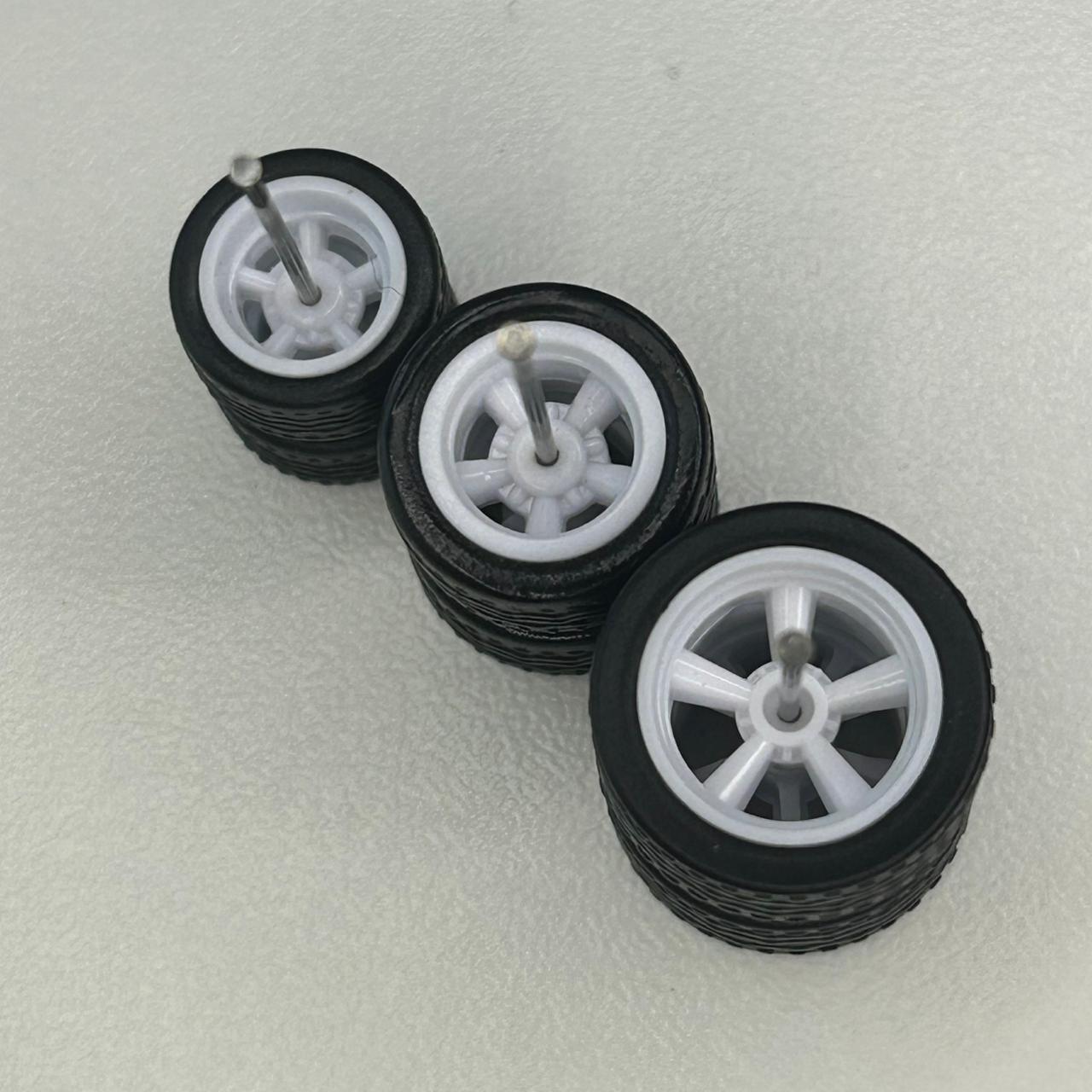 Kit/ composição: 4 rodas pneus e dois eixos em medidas padrão. Essas medidas são fixas e podem não ser totalmente compatíveis com todas as miniaturas.