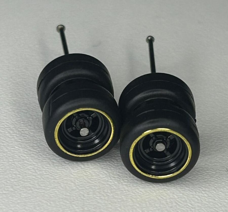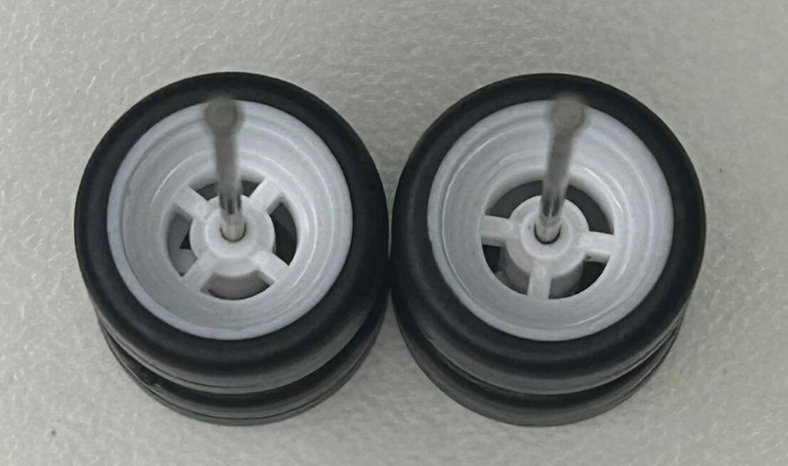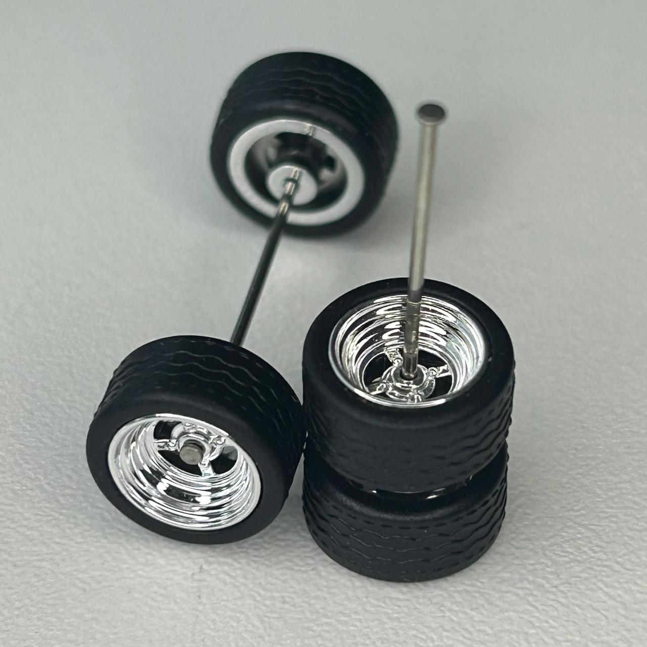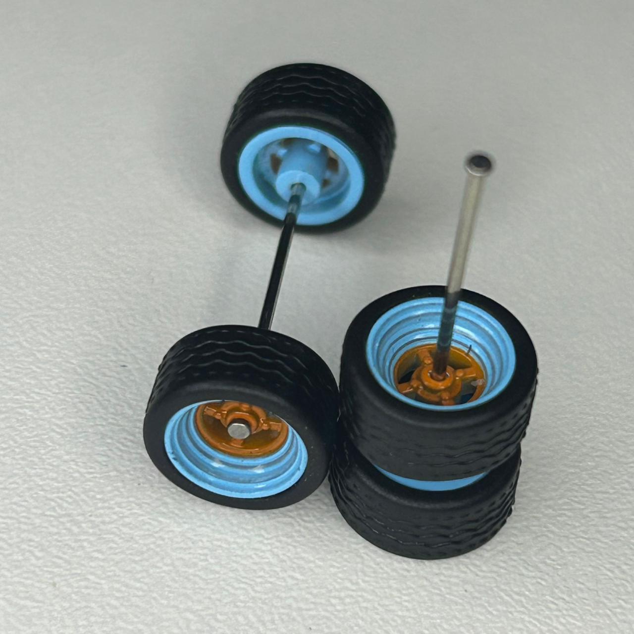 Roda 9,8mm com pneus pretos destacáveis.