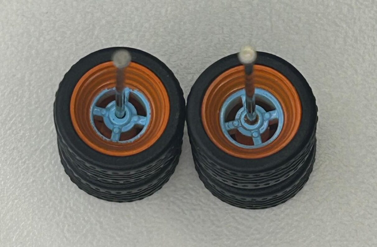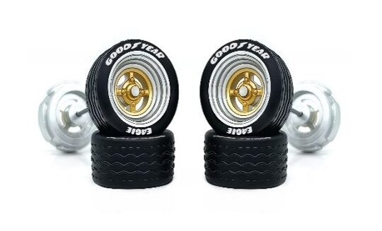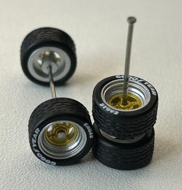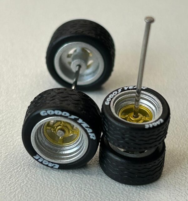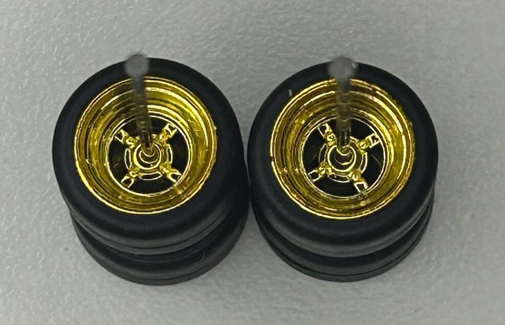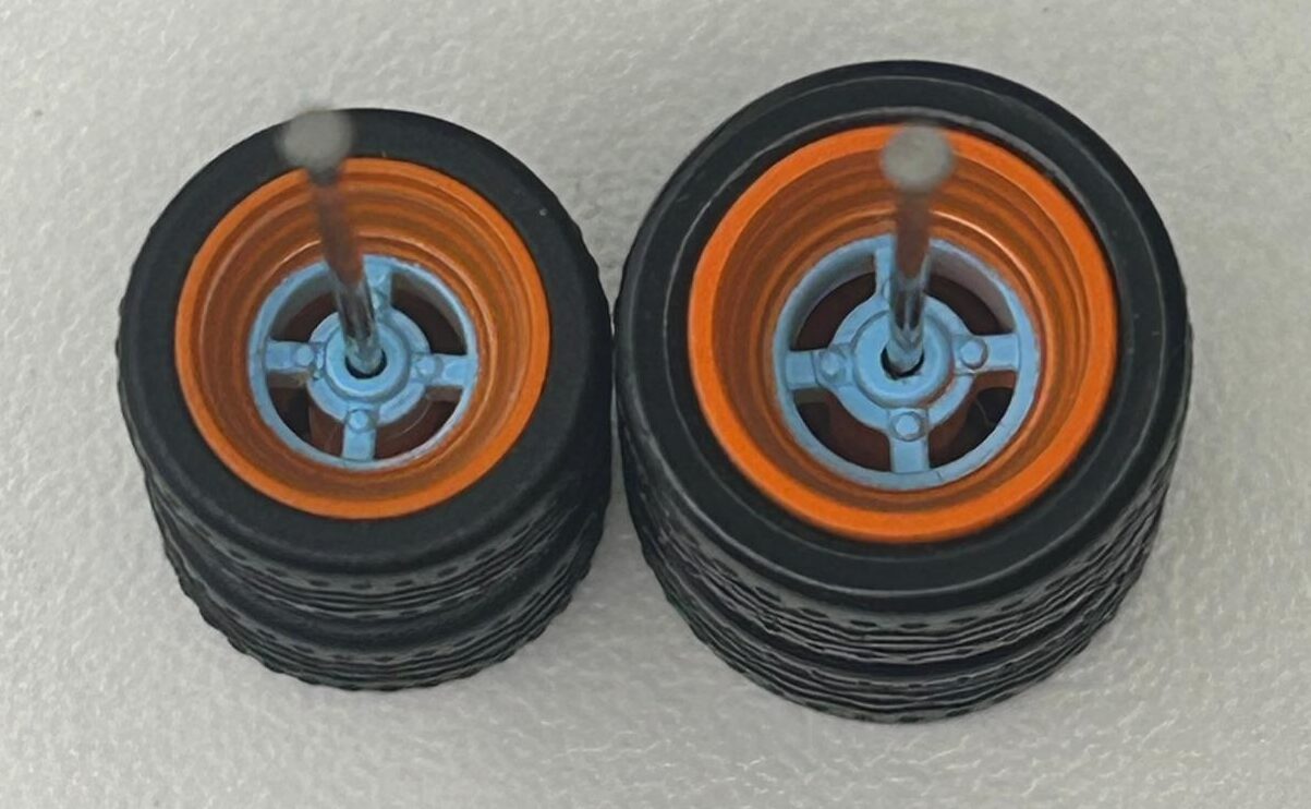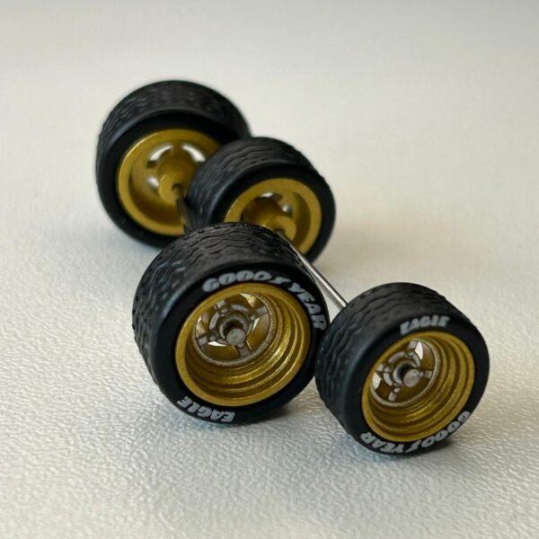Roda 9,8mm com pneus pretos destacáveis.
