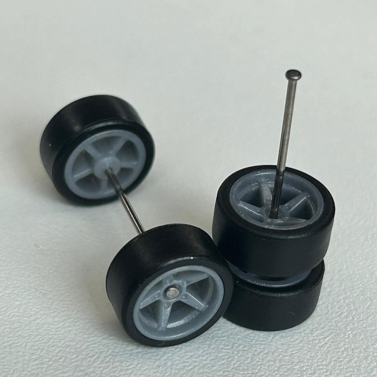 Kit/ composição: 4 rodas pneus e dois eixos em medidas padrão. Essas medidas são fixas e podem não ser totalmente compatíveis com todas as miniaturas.
