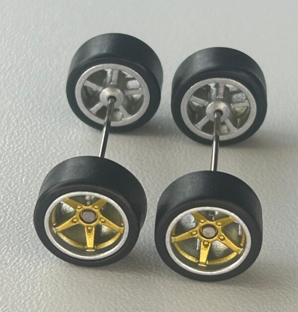 Kit/ composição: 4 rodas pneus e dois eixos em medidas padrão. Essas medidas são fixas e podem não ser totalmente compatíveis com todas as miniaturas.