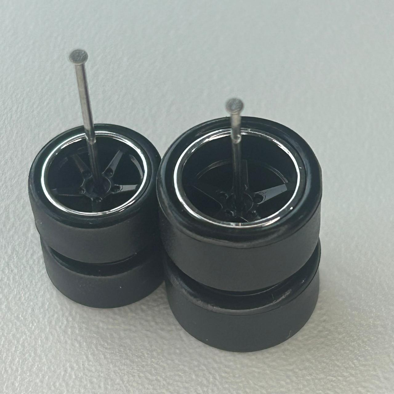 Kit/ composição: 4 rodas pneus e dois eixos em medidas padrão. Essas medidas são fixas e podem não ser totalmente compatíveis com todas as miniaturas.