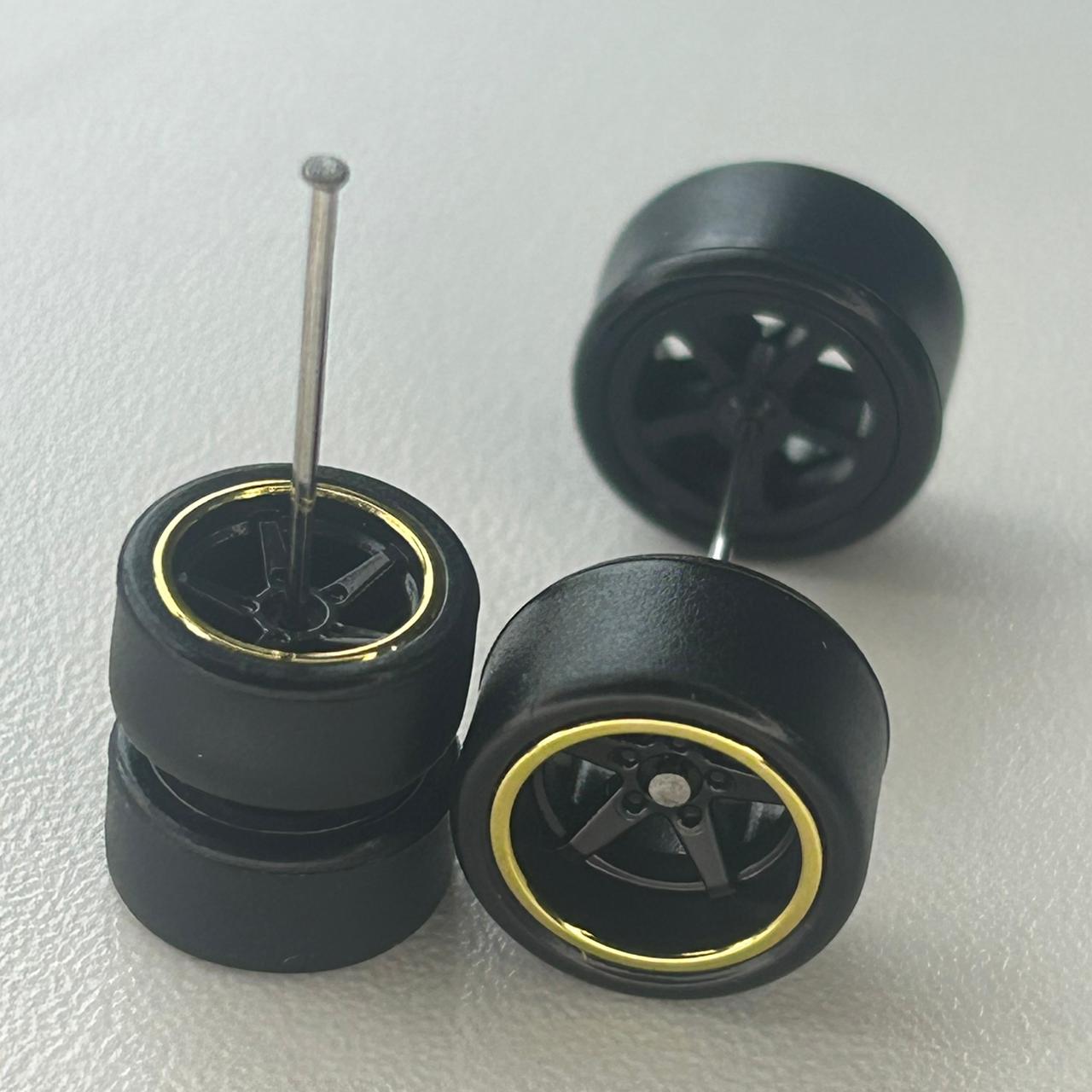 Roda Deep Dish Preta Borda Dourada