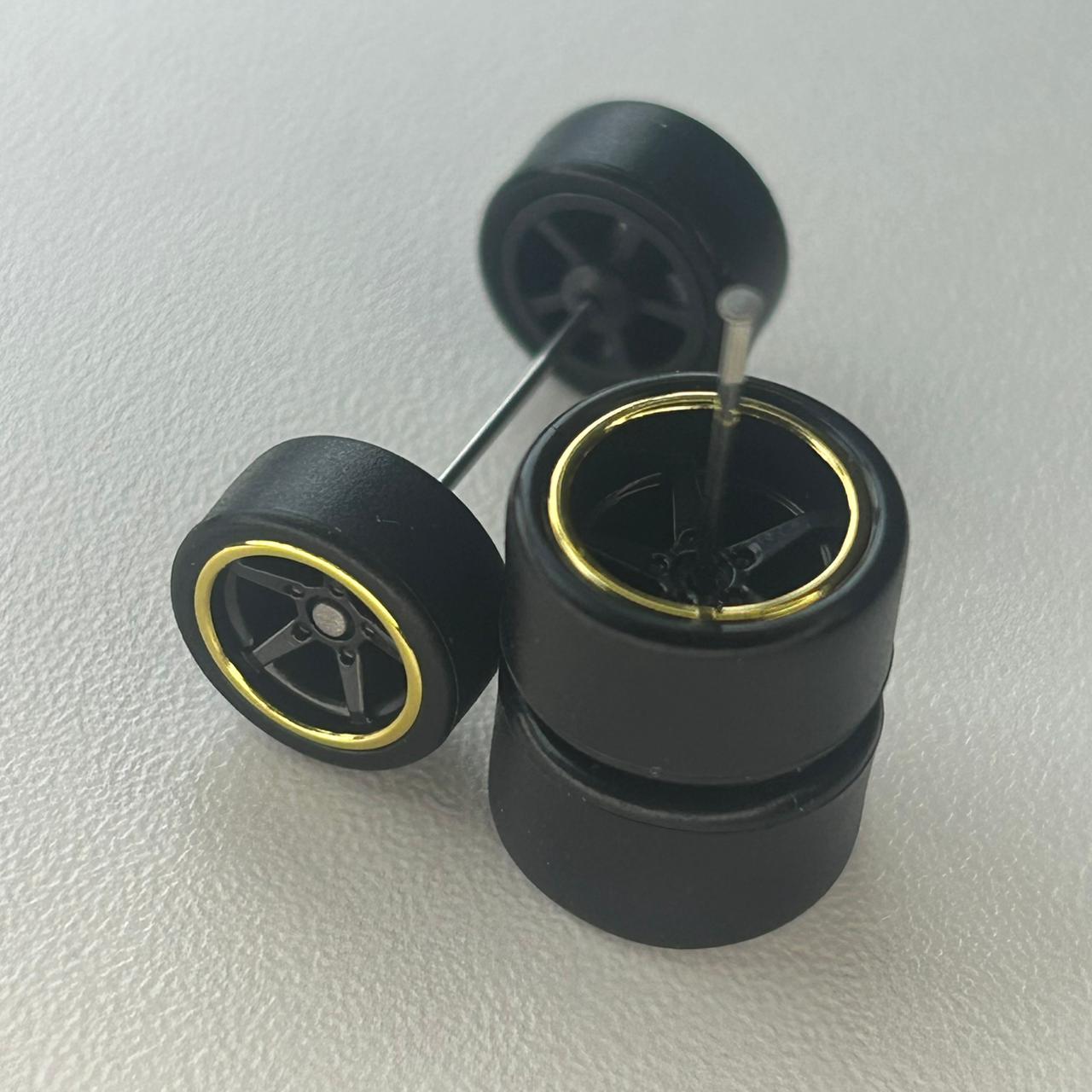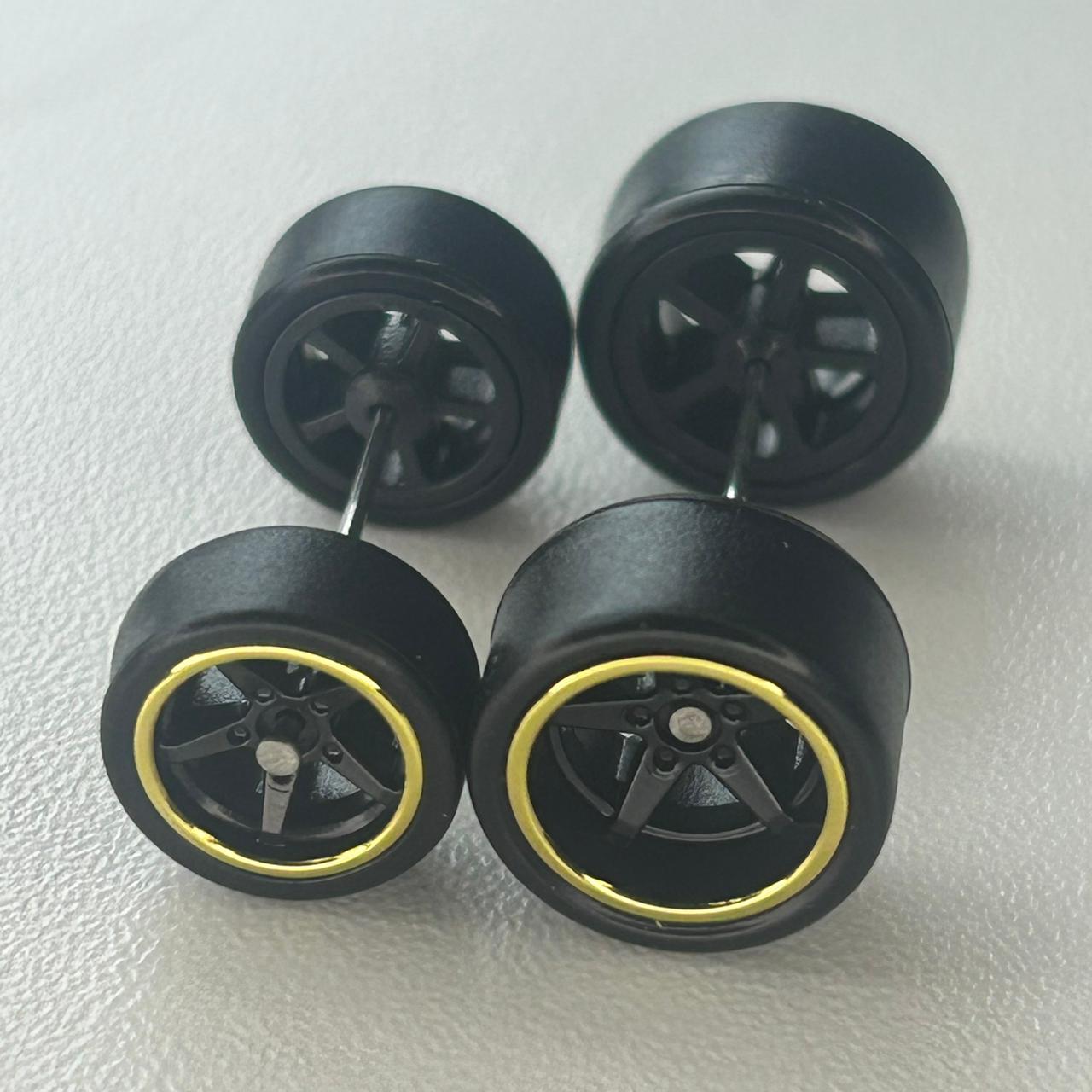 Kit/ composição: 4 rodas pneus e dois eixos em medidas padrão. Essas medidas são fixas e podem não ser totalmente compatíveis com todas as miniaturas.