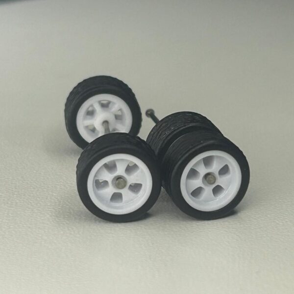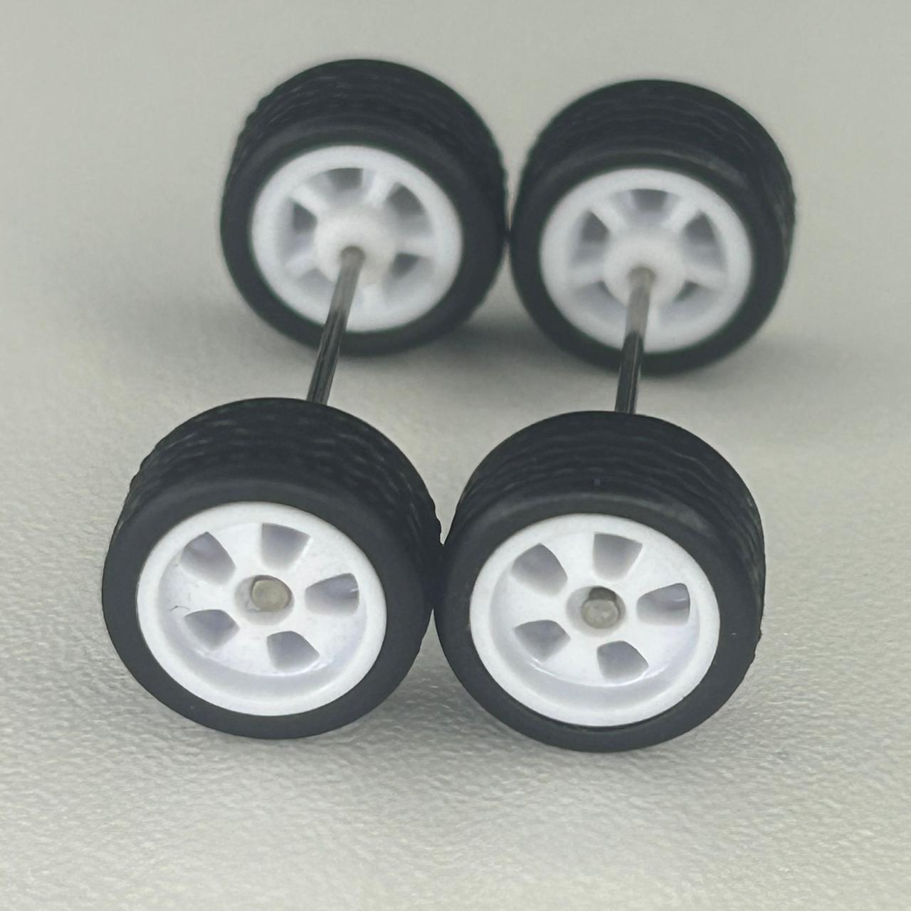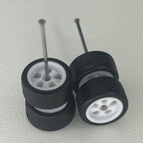 Kit/ composição: 4 rodas pneus e dois eixos em medidas padrão. Essas medidas são fixas e podem não ser totalmente compatíveis com todas as miniaturas.