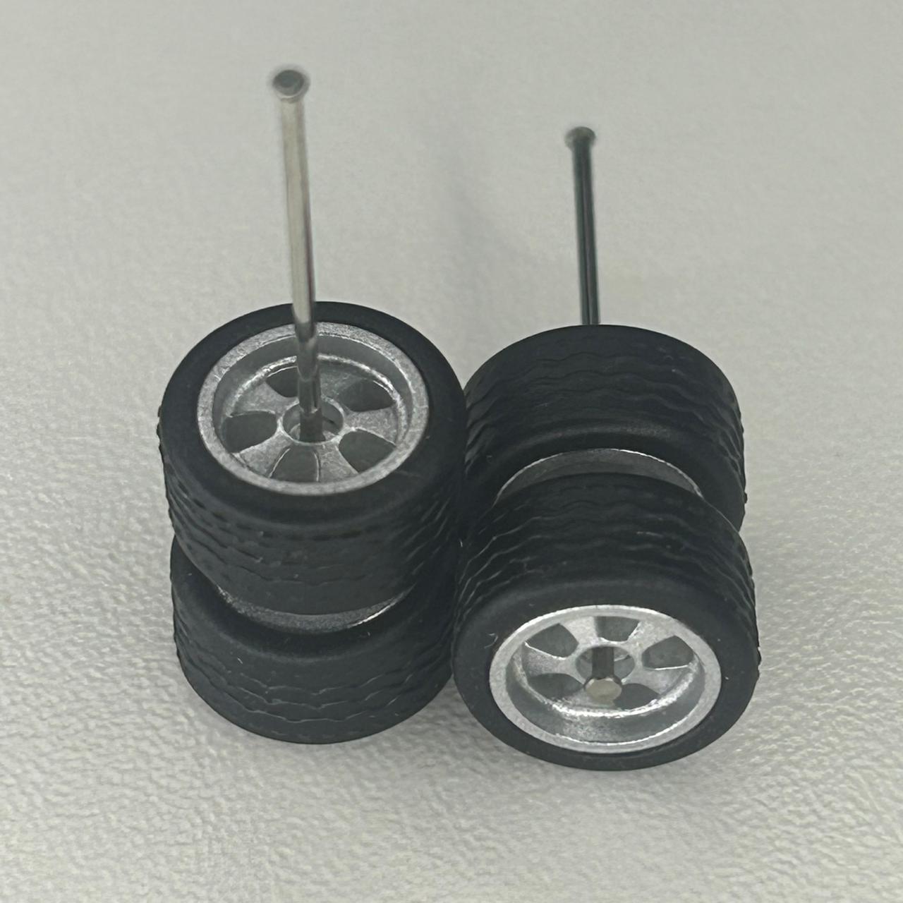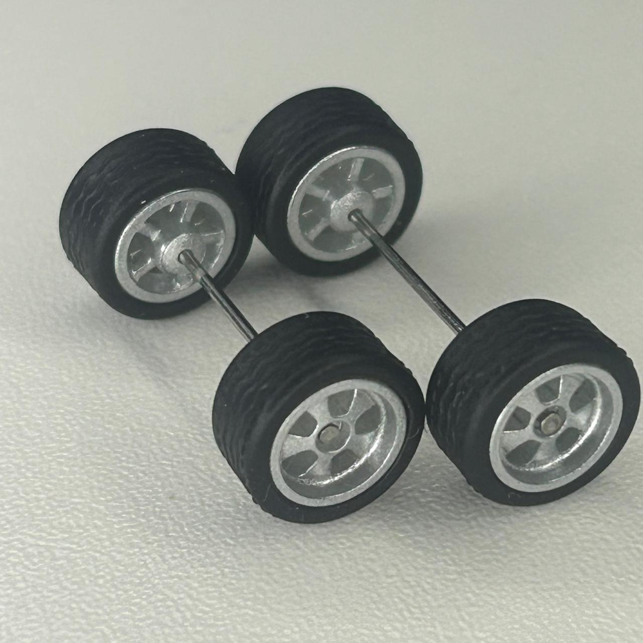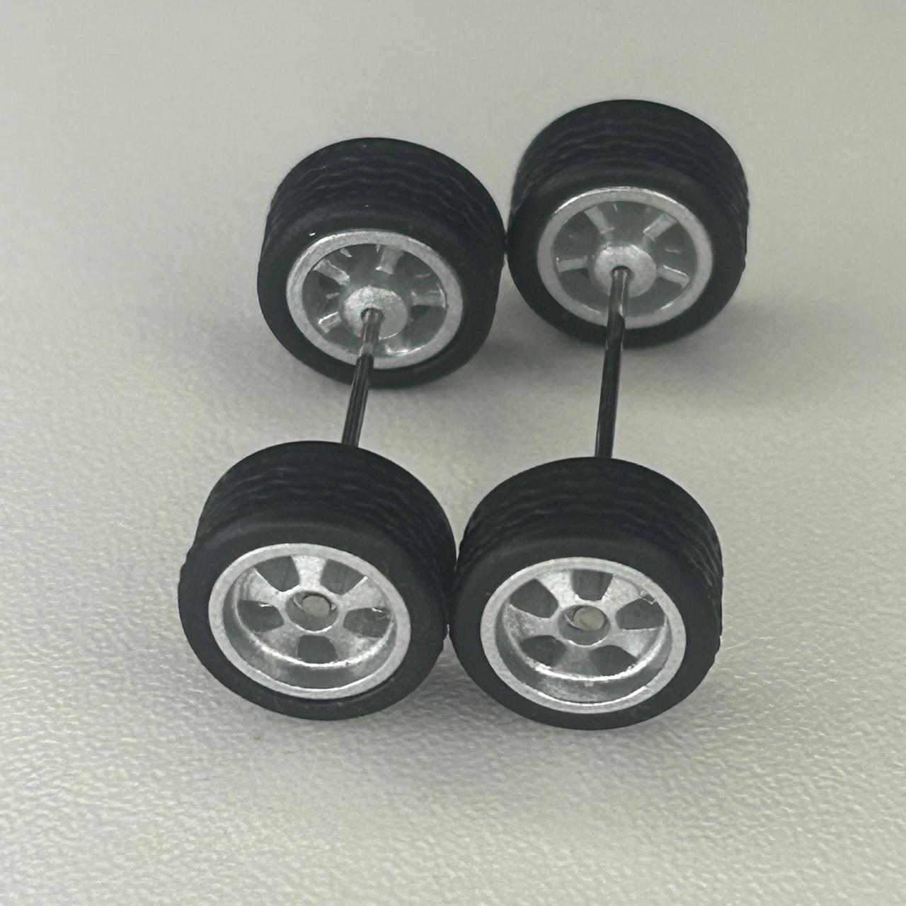 Kit/ composição: 4 rodas pneus e dois eixos em medidas padrão. Essas medidas são fixas e podem não ser totalmente compatíveis com todas as miniaturas.