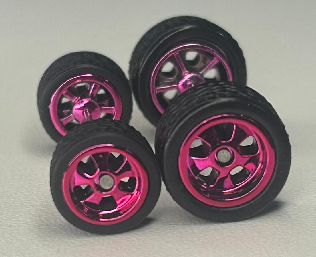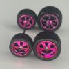 Kit/ composição: 4 rodas pneus e dois eixos em medidas padrão. Essas medidas são fixas e podem não ser totalmente compatíveis com todas as miniaturas.