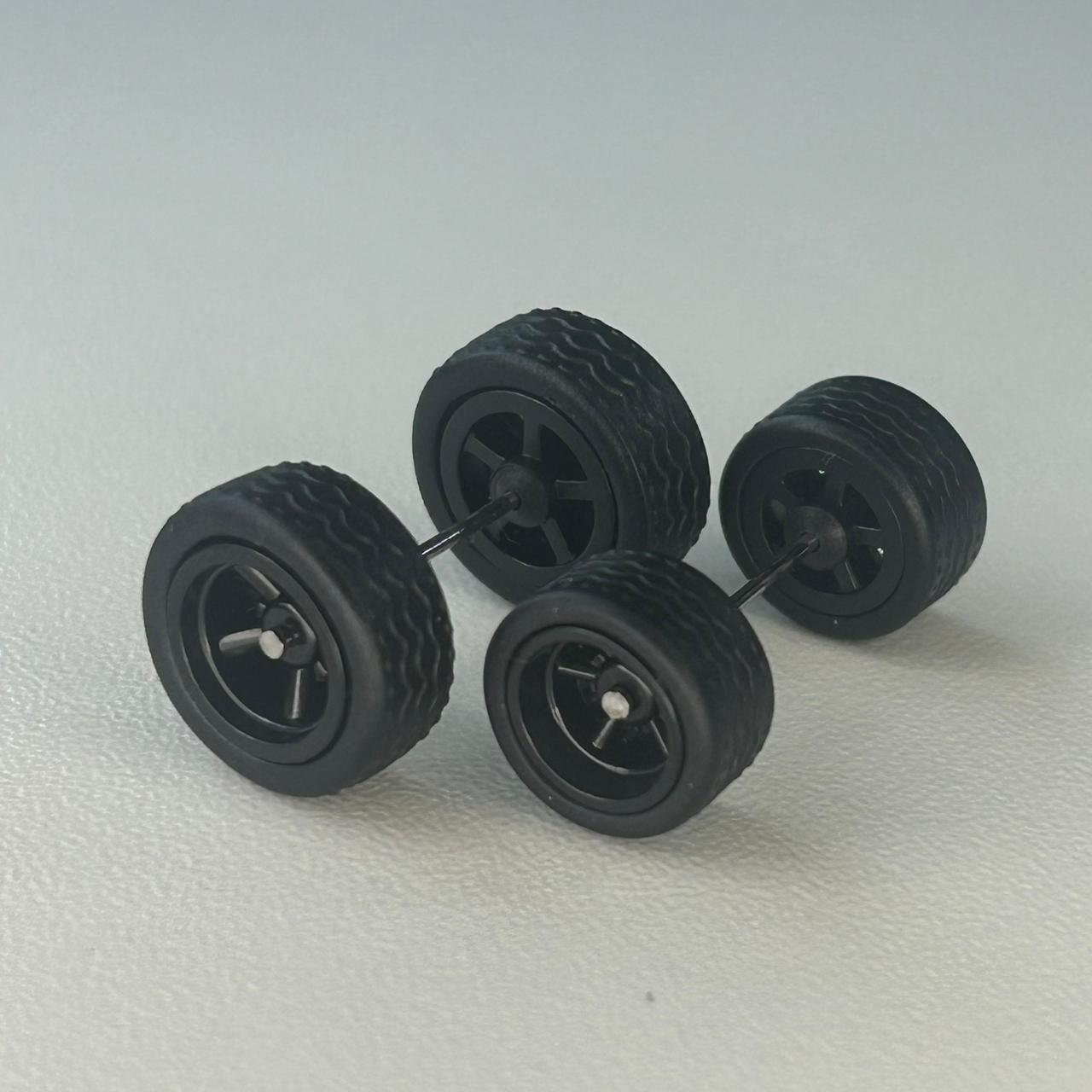Kit/ composição: 4 rodas pneus e dois eixos em medidas padrão. Essas medidas são fixas e podem não ser totalmente compatíveis com todas as miniaturas.