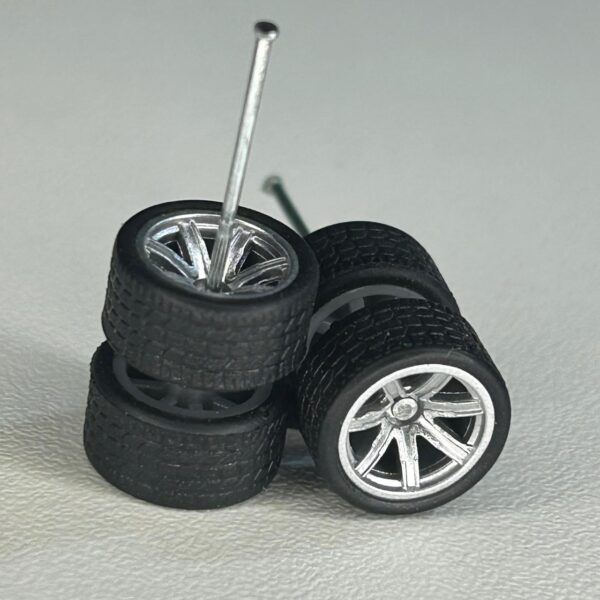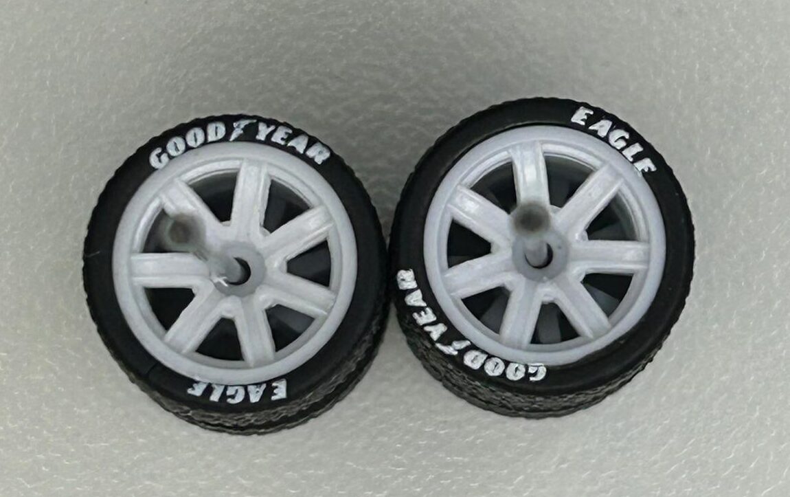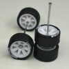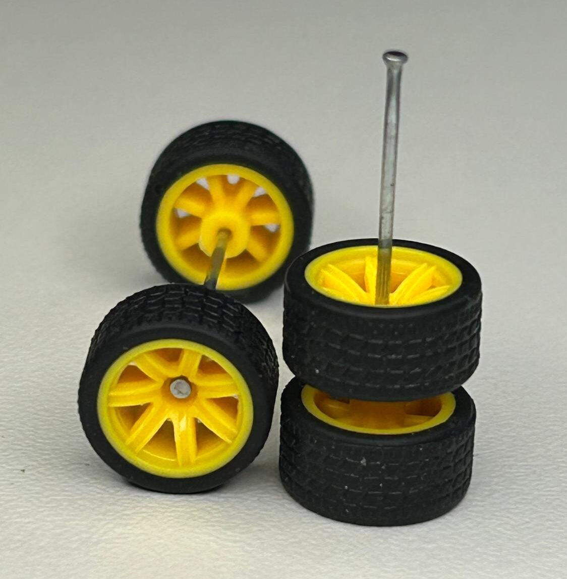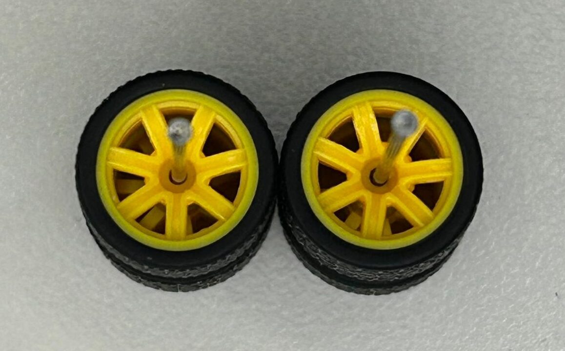 Roda com pneus fixos; Eixo fixo padrão; Não permite upgrade de pneus. Pneu com frisos