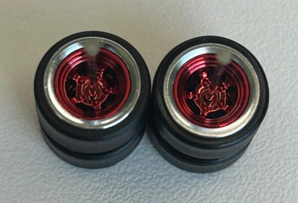 Roda de 11,20mm Interior vermelha e Anel cromado metalizado, permite troca de pneus